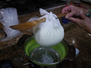 . Saturday Mary taught a class grilling with artisan cheeses (awesome) and today she taught a hands on Intermediate Cheese making. I don't teach hands on classes, I'm too much of a control freak, but Mary and the staff at Great News did an amazing job helping 25 students make 4 cheeses. Cheese making is really magical....adding acid and culture to the milk and creating cheese right before your eyes. If you have the opportunity to take one of Mary's classes, I urge you to do it; she's such a great teacher and resource, and this cheese making thing can be addictive! Here are a few photos from our class.