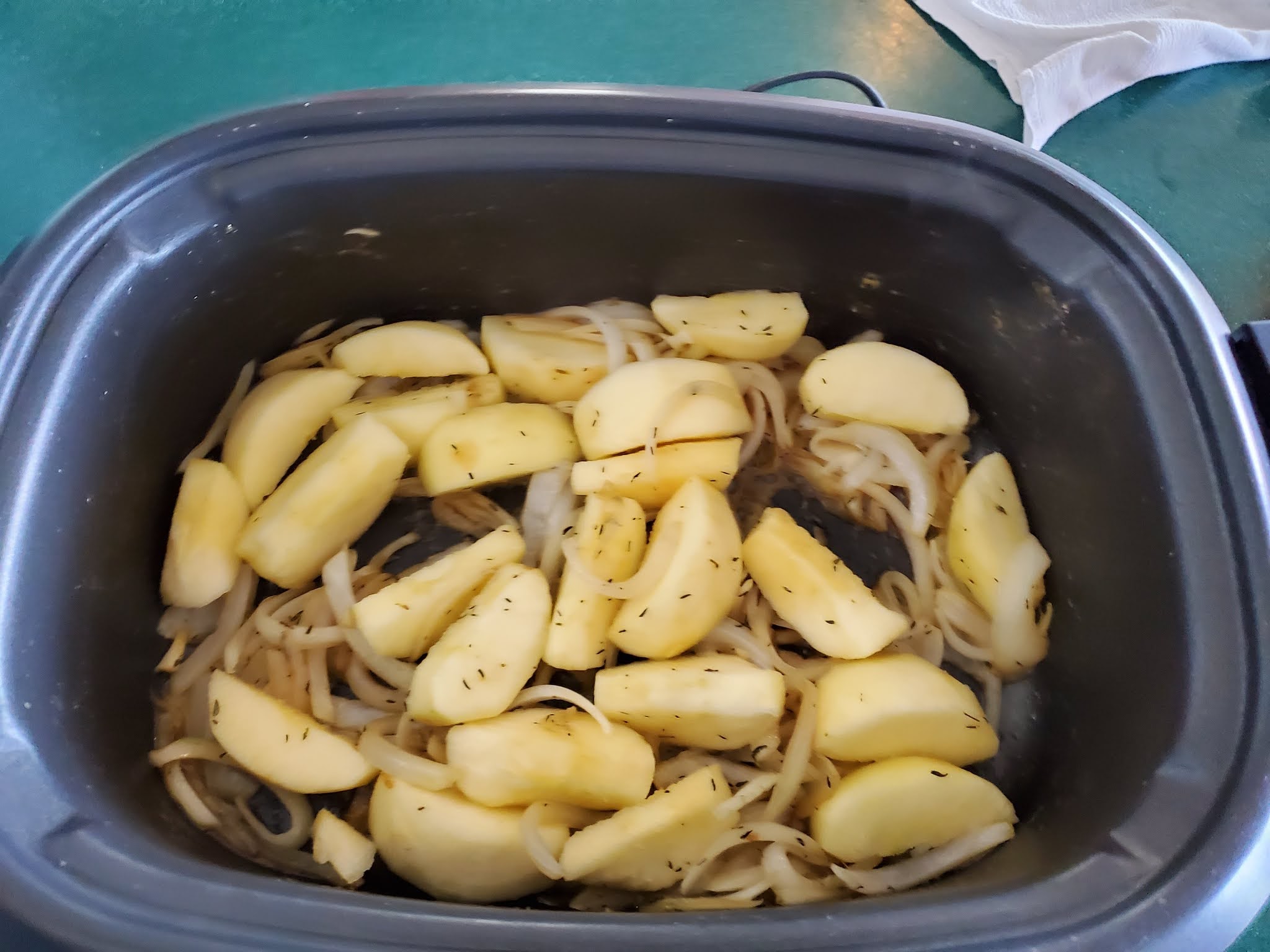 During hot weather like this, my slow cooker is a God-send. I use it for soups, braises, and as a low and slow oven. At high, a slow cooker should be at 300 degrees, so you can slow bake foil-wrapped potatoes, or make lasagna.