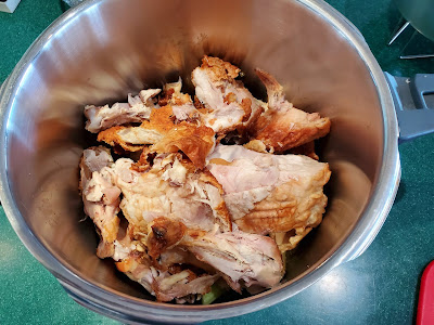 What's the first thing you smell as you walk towards Costco? It's not the wagon wheel pizzas at the food court, it's the whirling rotisserie chickens that they turn out faster than you can buy them. Costco sells about 100,000 of them per day and about 90 million a year. At $4.99, it's a loss leader for them, but for me, it's almost a week's worth of dinners. The first dinner is cutting up the chicken and serving it with a green salad. Next day, cut off all the usable meat and make chicken stock with all the leftovers. If you have an Insta-pot and/or a pressure cooker this is where they shine. In less than an hour, you will have rich chicken stock. That stock can be the basis for a chicken pot pie, or soup or stew.